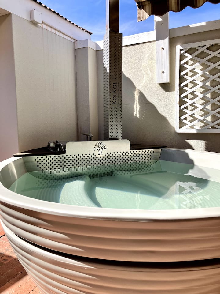 אפשר להירגע כאן עם מקלחת חיצונית וג'קוזי.