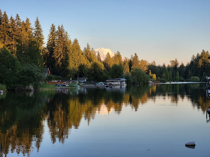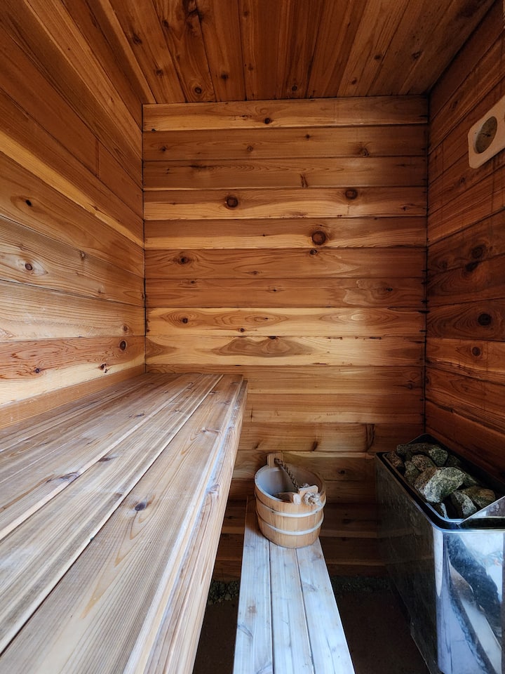 קוטג' על שפת האגם עם סאונה חמה וחצר אחורית גדולה