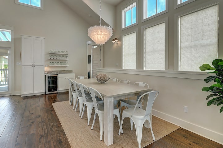 חלל המגורים הראשי: הקומה העליונה הפתוחה מוארת, אוורירית ומרווחת. זהו "חדר נהדר" אמיתי בכל מובן של המילה! המטבח כולל את כל מכשירי הנירוסטה, כיריים גז, תנור ומכונת קרח נוספת. האי הגדול הוא מקום מפגש נפלא תחת זוהר תאורת הנברשות החוף. ליהנות ממרחב נוסף בבר כדי לערבב ולשמור משקאות. המטבח משקיף על פינת האוכל עם שולחן גדול שמתאים ל-10 (או עד 12 עם הכנף הנוסף). הוא צמוד לסלון שבו אפשר להירגע על הספה המודולרית שבה יכולים לשבת בקלות 6 אנשים, ועל שני כיסאות סיבוביים כדי להפוך את הצפייה בטלוויזיית 65 אינץ' ל-FRAME לחוויה. אפשר גם להירגע אחרי יום בחוף הים עם מוזיקה רגועה במערכת הסאונד של Sonos. בקומה העליונה יש דק קדמי עם מקומות ישיבה בשפע ושולחן אוכל בחוץ שמתאים ל-6 אנשים. מחוץ למטבח תמצאו דק נוסף עם גריל גז של וובר ונופים מדהימים של השקיעה מעל המפרץ. כמו כן, לנוחיותכם בקומה זו יש חדר רחצה קטן מעוטר בטפטים של צדפים. בלילה, עם מתגי תאורה ניתנים לעמעום בכל מקום, תוכלו להגדיר את האווירה המושלמת לכל אירוע.