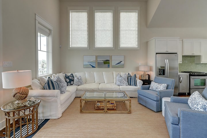 חדרי שינה: בבית הזה יש ארבעה חדרי שינה ושלושה חדרי רחצה וחצי. הרבה אפשרויות עם שני חדרי שינה עיקריים, אחד למטה ואחד למעלה, כל אחד מצויד במיטת קינג סייז וחדר רחצה פרטי. סוויטת הקינג למטה מעוצבת בעיצוב חוף יפהפה בצבעי כחול ולבן. חדר המיטות הקומתי מקסים ושובב. יש מקום לשישה עם מיטת קווין סייז וספה נפתחת. לכל מיטה יש תאורת נווטית משלו ושקע חשמל. חדר השינה האחורי – עם הדפסי דגים חופים יפהפיים ומצעים עם עצי דקל – חבוי, וכולל גם מיטת קינג סייז. בכל חדר שינה יש וילונות מותאמים אישית מדהימים עם בטנה שחורה כדי שכולם יוכלו לישון! מכונת הכביסה והמייבש זמינים למטה גם כן. בחדר השינה הראשי למעלה יש תקרות מקומרות עם חיפוי עץ, מזרן Tempur-Pedic® וחדר רחצה גדול עם כיורים כפולים, מקלחת נפרדת ואמבטיה עמוקה, יחד עם חדר שירותים סגור.