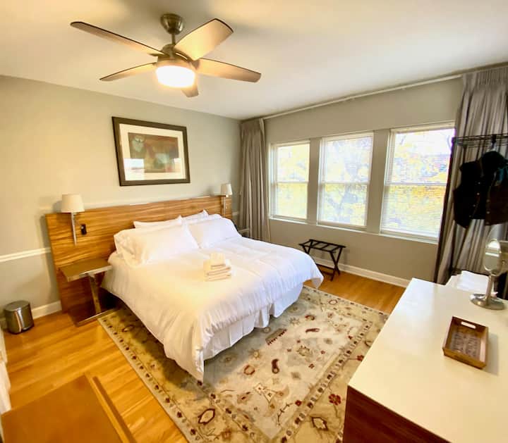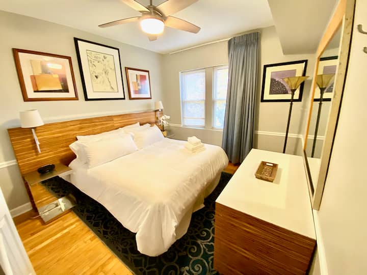מחפשים דירה שטופת שמש ומרווחת באזור החוף הדרומי? אל תחפשו יותר! דירת 3 חדרי השינה/2 האמבטיה שלנו מושלמת לשהייה שלכם בשיקגו. מצוידת בטלוויזיית Roku, Wi - Fi מהיר ומטבח מאובזר, תרגישו כמו בבית בדירה שלנו בגודל 1,500 רגל רבוע. עם שתי מיטות קינג סייז ומיטת קווין סייז אחת, יש הרבה מקום לקבוצה שלכם להירגע.