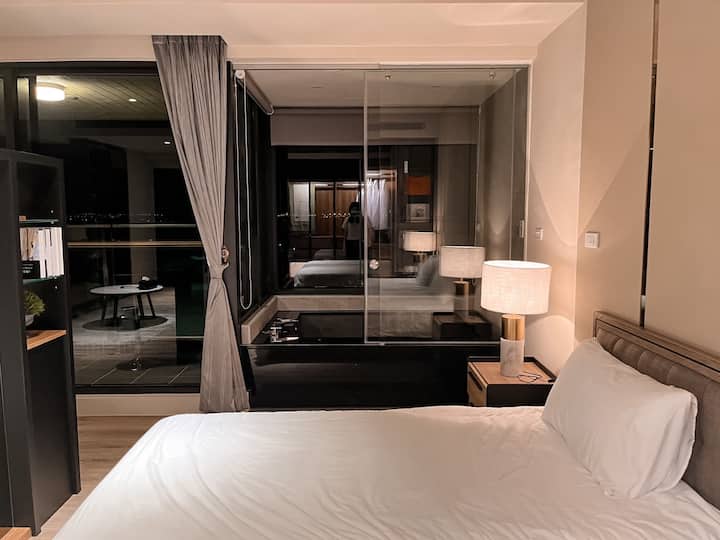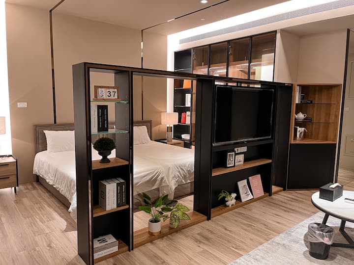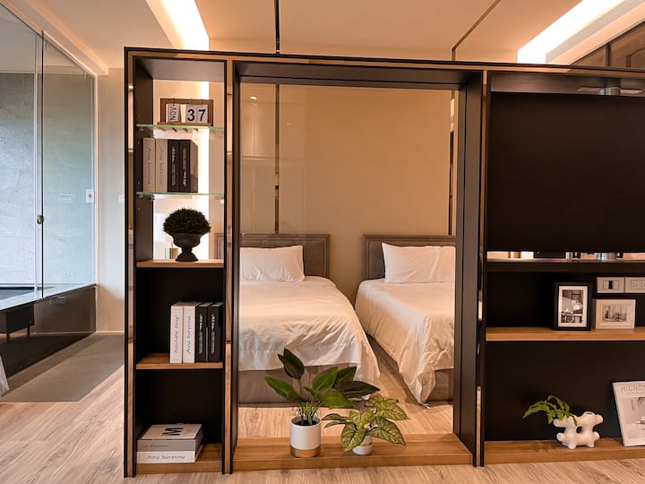 חדר מעיינות חמים קלאסי מודרני @ Yilan Tucheng (1 -3 אנשים) / סגנון מעצב / מרפסת נוף הרים - נוף לילי - נוף שקיעה, 15 פינג (בריכת אינסוף על הגג)