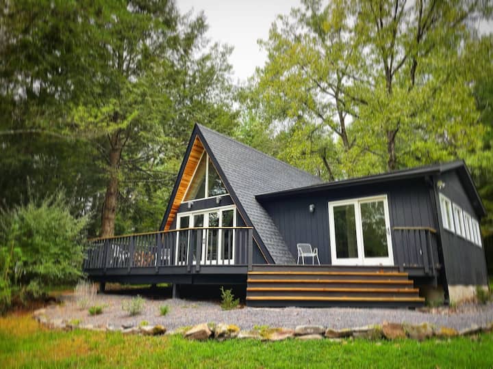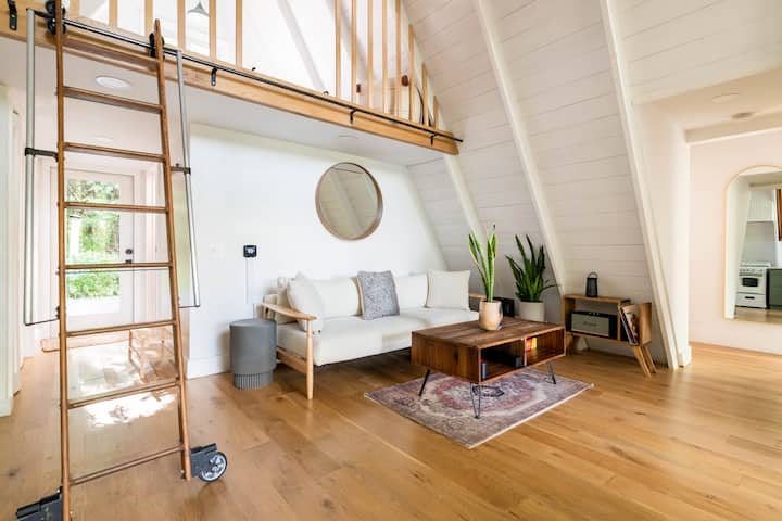 בית A - Frame מודרני ונוח 2 חדרי שינה + לופט, מדורה וגריל