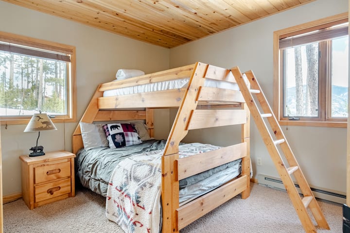 *חדר שינה 2: קומה ראשית: מיטת קומתיים עם מיטה מלאה למטה ותאומה למעלה.