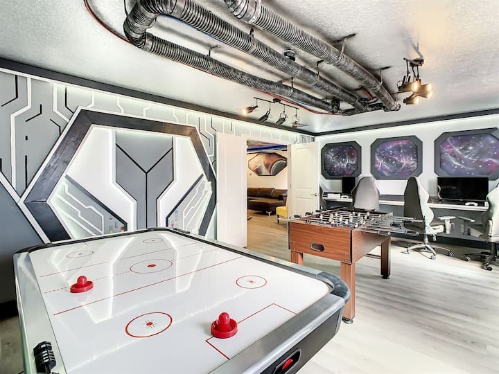 Galactic Getaway, וילה בת 8 חדרי שינה ששופצה במלואה על ידי Elevated Stays, מציעה חוויה סוחפת של גלקסיה רחוקה. ממוקם רק 12 קילומטרים דיסני ב Champions Gate, זה מושלם עבור קבוצות גדולות. הפעל את הדמיון שלך וליהנות בריכה פרטית/ספא, קולנוע, חדר משחקים, הוקי אוויר, foosball, xbox של, shuffleboard, ועוד. חדרי השינה נושאים לוקחים אתכם לעולמות שונים, כולל אווטאר, תור, הנוקמים, מלחמת הכוכבים ומעבר לה, ומבטיחים הרפתקת חופשה בלתי נשכחת.