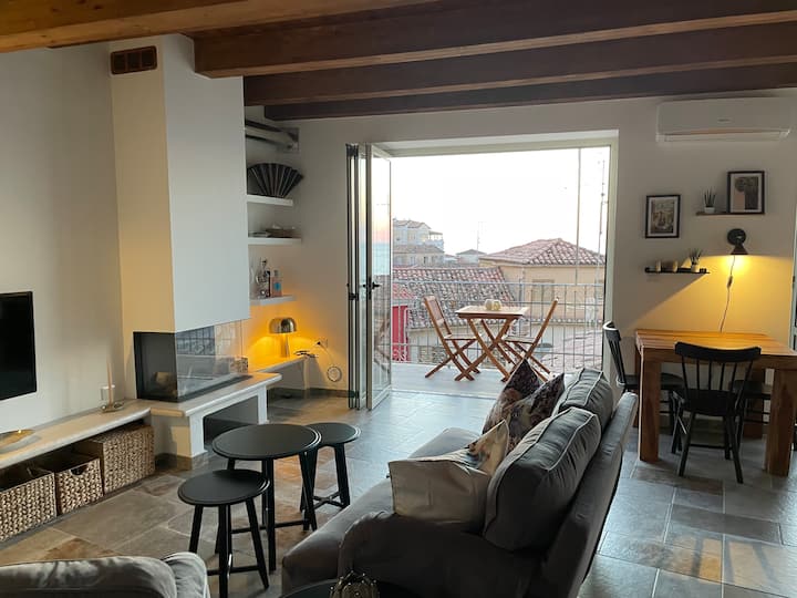 מרפסת גג עם נוף לים בעיר העתיקה של פיצו