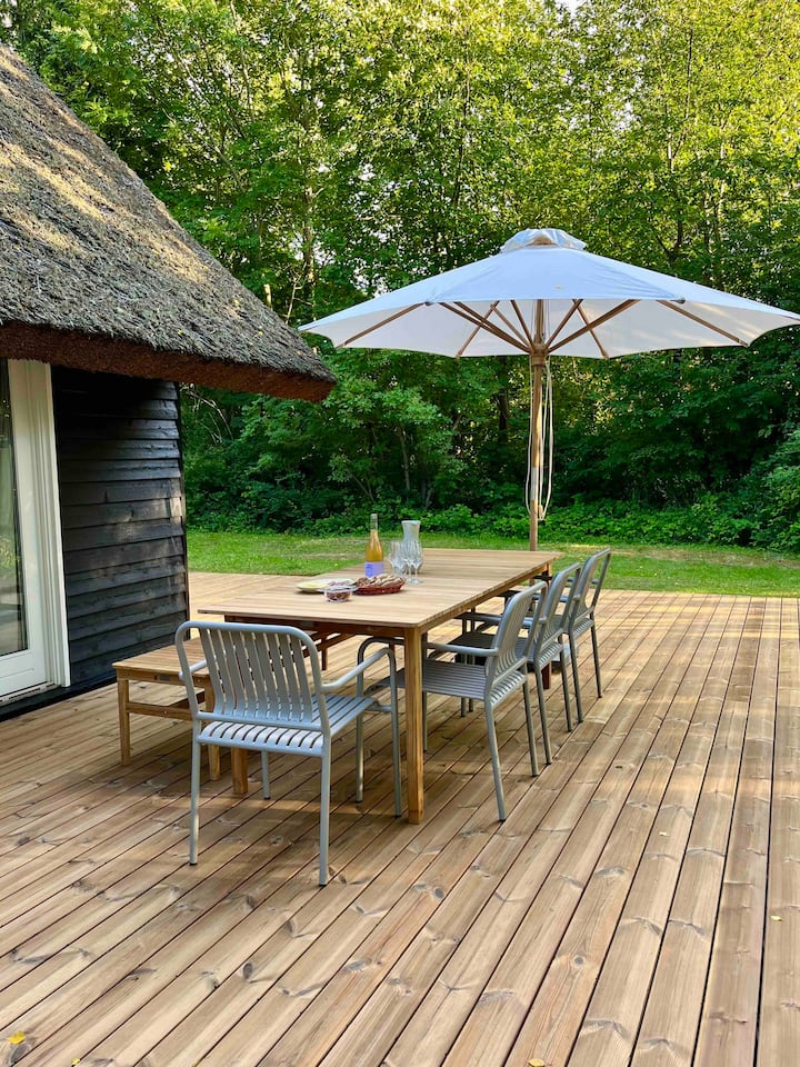 להיות מוקף בעצים בבית קיץ עם גג סכך