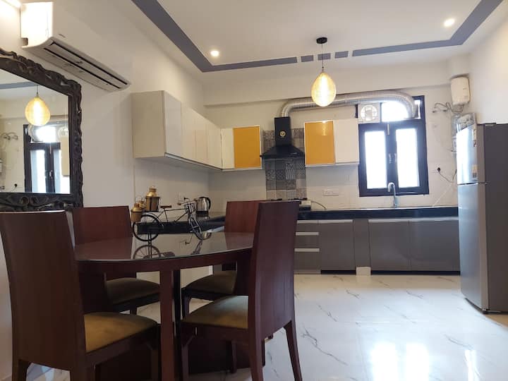 יש לנו 3BHK, 2BHK, 1RK, ודירות סטודיו בלב גורגאון, לכולם יש לפחות מיטה זוגית בכל חדר, יכולים להכיל 2 אנשים, ויש להם חדר רחצה פרטי ומצורף בחדר, ספה נוחה 4 מושבים בסלון, שולחן אוכל אחד, מטבח מאובזר עם כלי בישול וכלי חרס וסכו"ם.