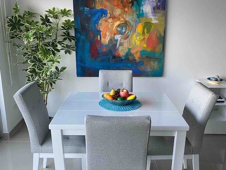 מחפשים חוויה רגועה ורגועה יותר בביקור בקרטחנה? דירה 2508 במועדון המרינה של קבררו היא המקום המושלם בשבילכם. הוא ממוקם בנוחות במרחק דקות ספורות מנמל התעופה הבינלאומי רפאל נונז ורחוב אחד מהעיר המוקפת חומה של קרטחנה. הדירה היפה הזו מציעה נוף יפה לים הקריבי. היא מרוהטת ומצוידת במלואה כדי לספק לאורחים שלנו חוויה מרגיעה ונוחה. מושלם לנוסעים בנסיעות עסקים.