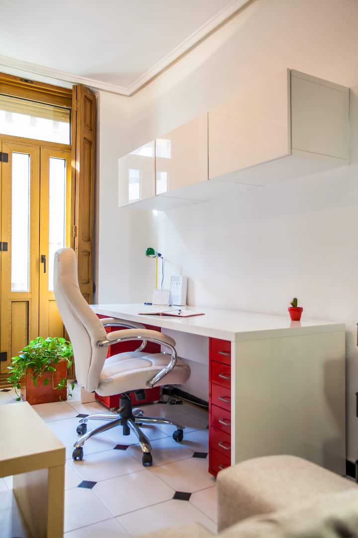 דירת שני חדרי שינה מוארת ומרווחת בלב רוזאפה, השכונה האופנתית ביותר בוולנסיה. מוקף במסעדות נהדרות, בתי קפה ומרפסות שטופות שמש, ורק דקות ספורות ממרכז העיר. מושלם לעבודה מרחוק, לזוגות או למשפחות קטנות, הוא מציע נוחות, סגנון ו-Wi-Fi סיבים במהירות גבוהה.
