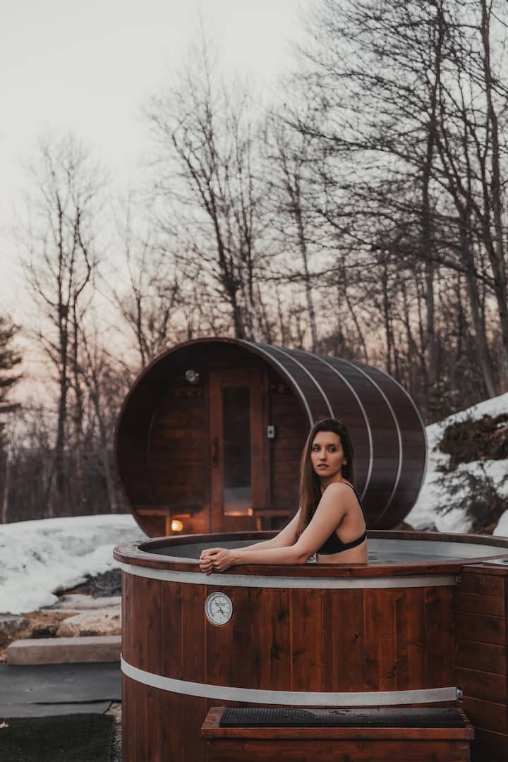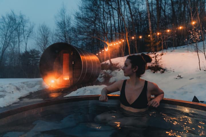 אכסנייה מעץ עגול - אזור ספא - 2 מיטות יחיד