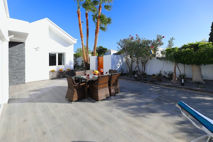 בווילה יש אזור פטיו גדול שמוקף בעצים ובשיחים כדי להבטיח את פרטיותכם. תוכלו להירגע בשמש על כיסאות נוח, עם מגבות החוף והשמשיות.