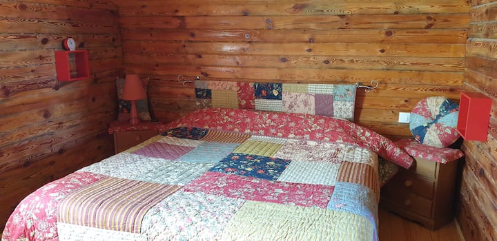 בקתה גדולה מעץ בשטח מיוער