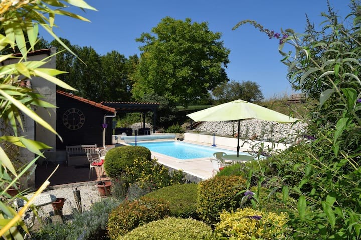 בית כפרי שליו עם 2 חדרי שינה ובריכה מחוממת