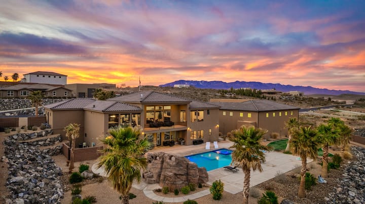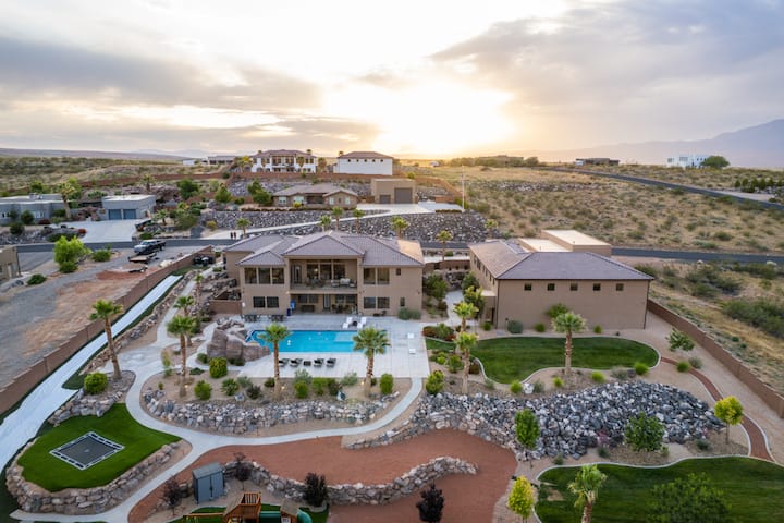 ברוכים הבאים ל - Grand Desert Oasis, אתר נופש פרטי משלכם ליד הפארק הלאומי ציון ו - Sand Hollow Resort. עם 9 חדרי שינה מרווחים, 10 חדרי רחצה, 2 מטבחים מלאים ובקתות נפרדות, הבית הזה בגודל 10,500 רגל רבוע מציע שפע של מקום לכולם. יתר על כן, היא כוללת את אחת הבריכות והחצר האחורית הפרטית הגדולה ביותר בדרום יוטה, מגרש ספורט מקורה ומגרש משחקים מפואר. כולל החלקה וגלישה אפית בגודל 200 רגל, משטח התזה יחיד במינו, אזור H20 הופ ועוד!