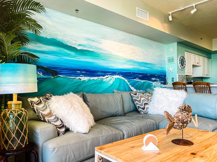 אתם תהיו רגועים ליד הגלים בדירה הזו עם ציור קיר צבוע ביד 3 דקות ממש בסלון!