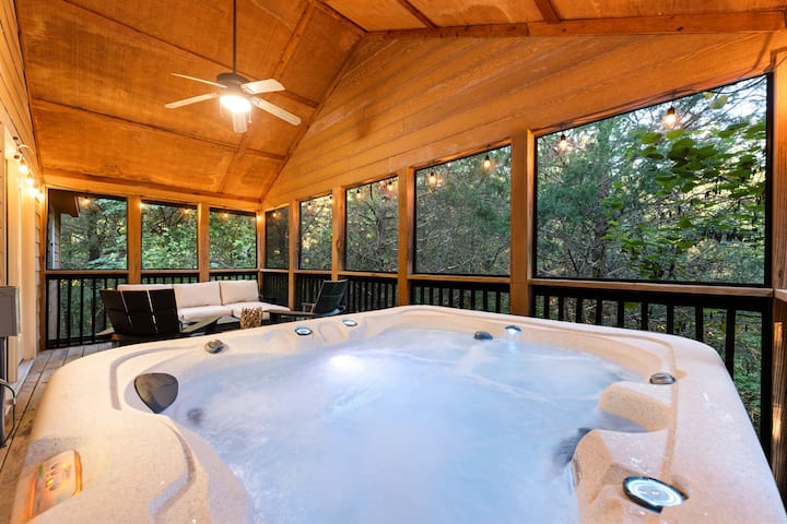 שוכן בחורשה של עצי ארז עם דק מוקרן פרטי עם ג'קוזי ונחל מבעבע. הבקתה הזו מושלמת לחופשה הבאה של משפחתכם בברנסון! כולם יאהבו את התפאורה היפה הזו ליד סילבר דולר סיטי.