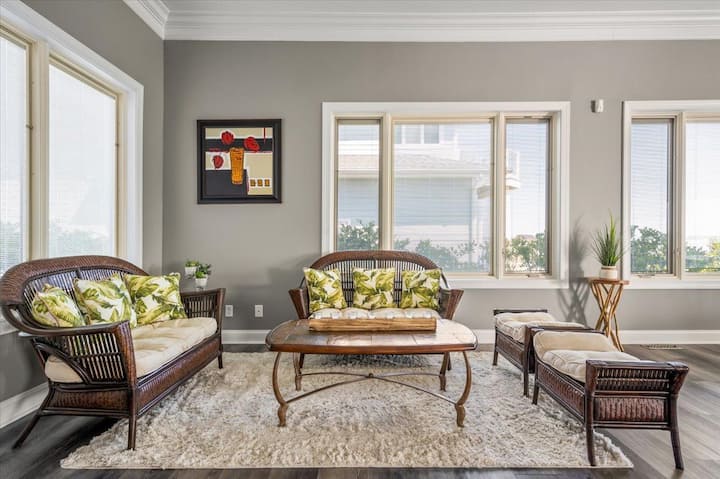 נופים מדהימים בבית הגדול והישיר הזה על שפת המפרץ באושן פיינס. הבית מציע יותר מארבעת אלפים מטרים רבועים של סלון עם ארבעה חדרי שינה, ארבעה חדרי רחצה מלאים וחדר שירותים אחד. אושן פיינס נמצאת במרחק נסיעה קצרה של 10 מייל מאושן סיטי וכל מה שיש לה להציע. הסלון הפתוח כולל את הסלון, פינת האוכל, הבר הרטוב, המטבח המאובזר ופינת הישיבה השנייה. התצורה הייחודית של הבית מציעה נופים יפהפיים כמעט מכל מקום בבית. חדר השינה הראשי בקומה הראשונה כולל מיטת קינג סייז, טלוויזיה וחדר רחצה ושירותים צמוד. בחדר השינה השני יש מיטת קינג סייז, טלוויזיה וחדר רחצה צמוד. יש "מגורי הקפטן" ליד חדר השינה השני עם סלון נוסף, פינת אוכל ומטבח. בחדר השינה השלישי יש מיטת קווין סייז, טלוויזיה וחדר רחצה צמוד. בחדר השינה הרביעי יש מיטת קווין סייז, טלוויזיה. הבית הזה מעוצב ומתוחזק היטב. הדק האחורי הגדול ומרחב החצר הם מקום נהדר להירגע אחרי יום ארוך בסירה או בחוף הים. Ocean Pines מציע שירותים רבים לאורחים, כולל בריכות, גולף, טניס, מרינות, פארקים, מועדון חוף ועוד. מידע נוסף ניתן למצוא באתר הקהילתי Ocean Pines. Ocean Pines מציעה את המיטב משני העולמות ... קהילת נופש קלאסית על החוף שהיא הרבה פחות קדחתנית מאושן סיטי, אבל נמצאת במרחק נסיעה קצרה מחופי אושן סיטי, מסעדות, שעשועים וקניות. אושן פיינס עצמה מציעה מספר מסעדות, ברים, בתי קפה, פארקים, מועדון יאכטות, מכולת, קניות ועוד. בואו ליצור זיכרונות בחוף הים עם חופשות על החוף. חבילת מצעים ומגבות כלולה בהזמנה. דמי הניהול כוללים ויתור על נזק בסך 1,000 דולר לכיסוי נזקים בשוגג.