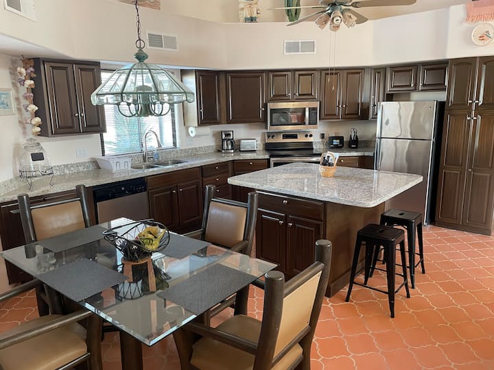 אני ג'ניפר, בחורה גבוהה שאוהבת כלבים וחתולים, טניס, עסקים ובישול. זה עשוי להסביר כמה מההיבטים העיקריים של Airbnb שלנו. עמלות חיות מחמד בחינם; הביאו את בן המשפחה הפרוותי שלכם! כמה מכשירי חשמל חדשים וכלי בישול, גריל וכמובן, אנחנו עכשיו בעלי עסקים קטנים - זה כל כך מרגש ומלחיץ. אני נשוי לג'ים, הבעל הכי טוב בעולם. אנחנו רוג'ר קליין ואוהרי Peacemaker ועוקבים אחרי הלהקה כשאנחנו יכולים. אנחנו גרים בטקסס אבל אוהבים את פוארטו פניאסקו. אנחנו מקווים לפרוש לבית הזה יום אחד. אנחנו מעריכים את העסק שלכם, לא רק בבית שלנו, אלא גם בקהילה הנהדרת הזו! אל תהססו להודיע לנו איך נוכל לעזור לכם ליהנות. אנחנו אוהבים להיות כאן ומקווים שתעזבו רעננים ומחדשים.