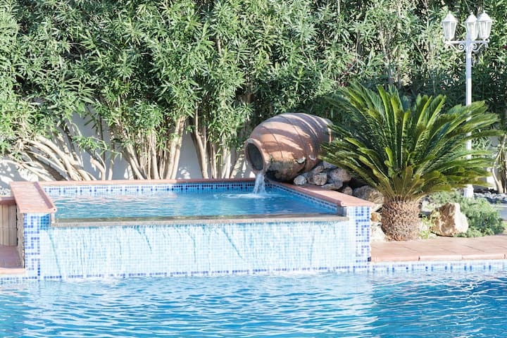בריכה חיצונית – זמין כל השנה, מחוממת, מיטות שיזוף