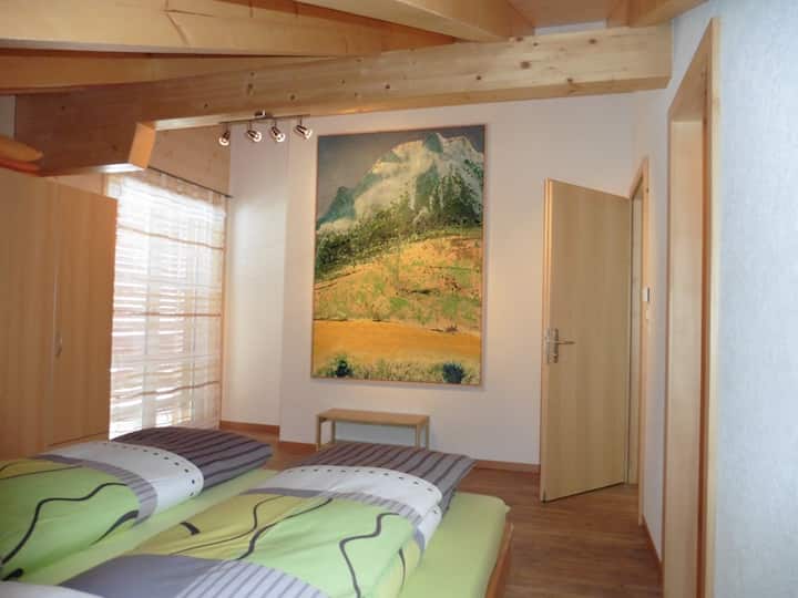 דירה נהדרת עם 2 חדרי שינה ו -2 חדרי רחצה. חדר "Alpenstübli ": עם בקתה אלפינית שוויצרית מובנית, רומנטית ונעימה. חדר "Bergblick ": חדר גדול עם עצי אשוחית וציורי הרים. הדירה נמצאת במרחק 3 דקות הליכה בלבד מרכבל ומהאוטובוס. אידיאלי לסקי, טיולים רגליים, סיורי הרים, רכיבה על אופניים, פעילויות חוצות, מגדל Höi, אזור הסקי אדלבודן - לנק.