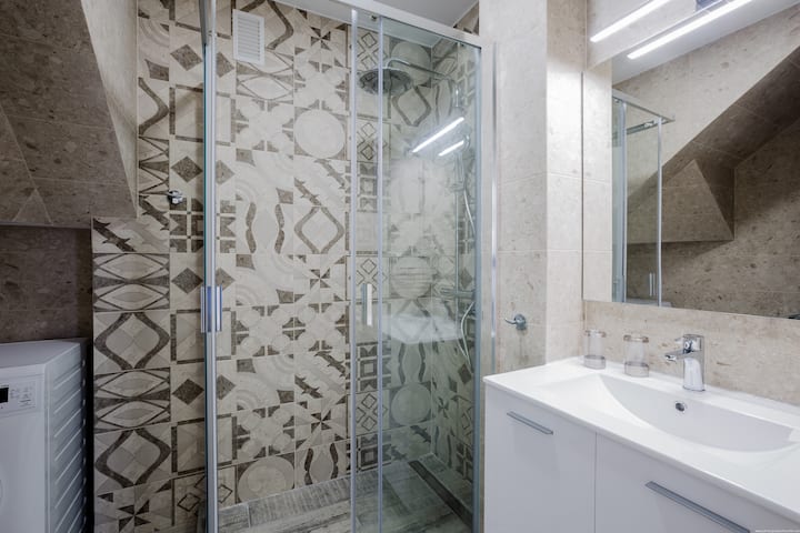 בדירות שתי קומות: בקומת הקרקע 3 חדרי שינה, חדר רחצה , סלון קטן ומרפסת. בקומה השנייה יש מטבח מואר גדול עם פינת אוכל וגישה למרפסת, כמו גם מרפסת גדולה עם ריהוט נוח להירגעות, המצוידת בספרו חשמלי, שיאפשר לכם להירגע במרפסת בכל מזג אוויר ושעה ביום, קחו, אפשרות לשיזוף. כל מה שנשאר זה להוסיף שלכל הקומה העליונה יש חלונות פנורמיים עם נוף בלתי מנוצח לים!