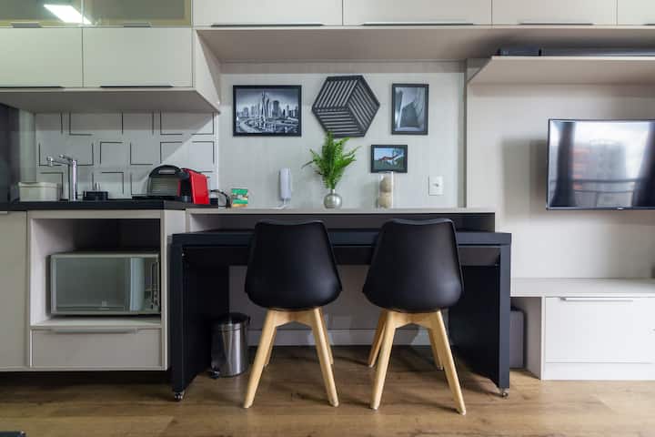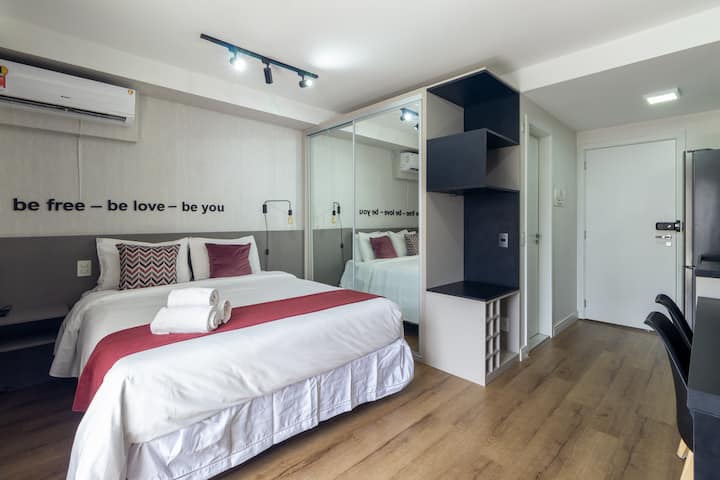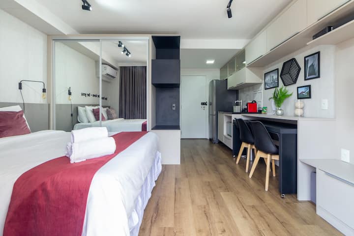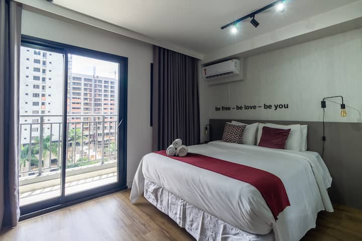 Moema - סטודיו - 32 מ' - מרפסת - מיטה זוגית