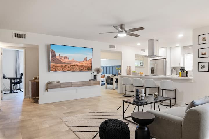 הבית שלנו ממוקם באחת מהשכונות המבוקשות ביותר בסקוטסדייל, ומציע איזון מושלם בין מיקום, מרחב ושירותים לאורח כדי ליצור חופשה מעולה בסקוטסדייל. הנכס שופץ להפליא כדי לספק חוויית אירוח משודרגת. תוכלו ליהנות מהחצר האחורית הפרטית המעוצבת החדשה עם משחקי חצר, בור אש וגריל, או לאכול ארוחה תחת אורות הביסטרו.