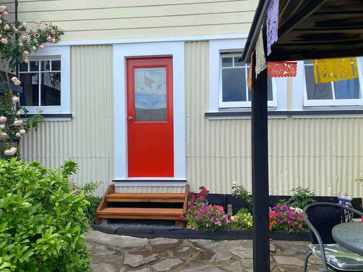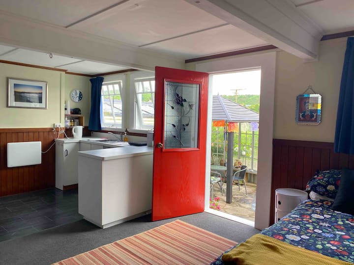 קוטג' סטודיו עם דלת אדומה עם חניה וגינה