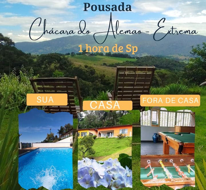 ברוכים הבאים לפוסאדה צ'אקרה דו אלמאו! מקום האירוח החלומי שלכם באקסטרמה/מינאס ז'ראיס: בית שלם עם מרפסת עם נוף לרכס ההרים, מטבח מאובזר, 2 חדרי שינה, סלון וחצר עם מנגל. כאן אתם מתעוררים לשלוות הטבע ונהנים מזמנכם בחופש ובנוחות. אנחנו במרחק שעה מסאו פאולו, באזור אקסטרמה/מינאס ז'ראיס, הגבול עם ורגם/סאו פאולו. הבית שלו מחוץ לבית במנטיקיירה. פונדק עם נשמת הבית. ברוכים הבאים, הבית כולו שלכם! הבית שלכם בסרה דה מנטיקיירה!