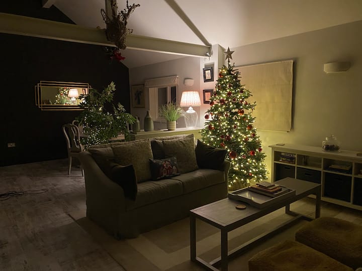 מקום אירוח יפה עם תוכנית פתוחה בקומה הראשונה.