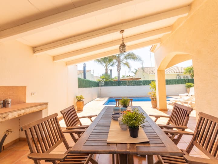 Riumar 10 ק"מ מדלטברה: בית יפה ונעים "מרינרה ". במיקום שקט ושמשי, 350 מ' מהים, 350 מ' מחוף הים. פרטי: נכס (מגודר), בריכת שחייה זוויתית (7 x 3 מ', עומק 1 - עומק 90 ס"מ, זמינות עונתית: 01. ינואר - 31. דצמבר) עם מדרגות פנימיות. מקלחת חיצונית, פרגולה, מרפסת, ריהוט גן, מנגל. בבית: אינטרנט אלחוטי, מיזוג אוויר. חניה בבית, חניה ציבורית על הכביש. סופרמרקט 850 מ', מסעדה, בר 300 מ', מאפייה 850 מ', תחנת אוטובוס "Riumar" 850 מ', תחנת רכבת "Aldea - Amposta" 25 ק"מ, חוף חולי "Riumar" 300 מ'. נמל ספורט 1 ק"מ. אטרקציות קרובות: Parque natural Delta del Ebro 2 ק"מ, Tortosa 35 ק"מ, Playa el Trabucador 29 ק"מ, ברצלונה 190 ק"מ, פורט אוונטורה 70 ק"מ. מסלולי הליכה: Ports Tortosa Beseit 52 ק"מ, GR 92 15 ק"מ. שימו לב: המכונית מומלצת. מתאים למשפחות.