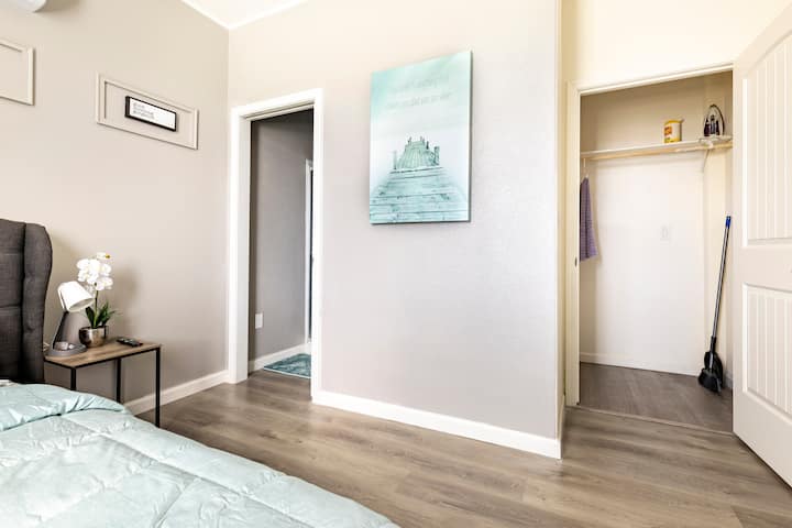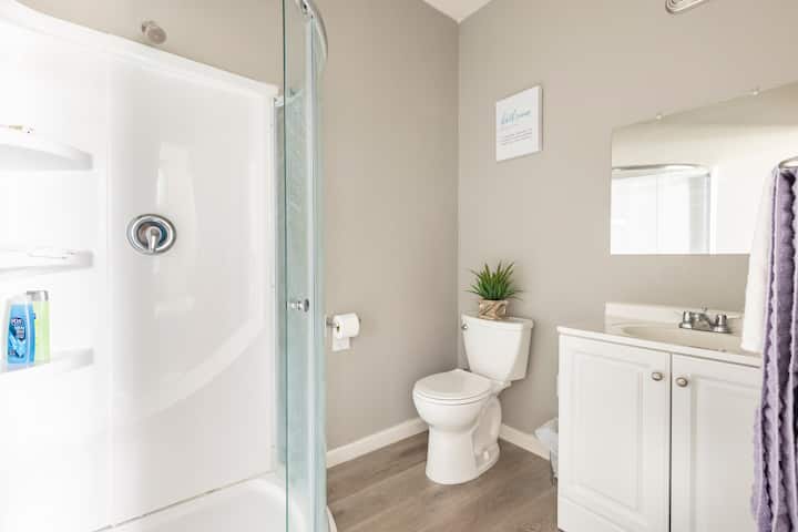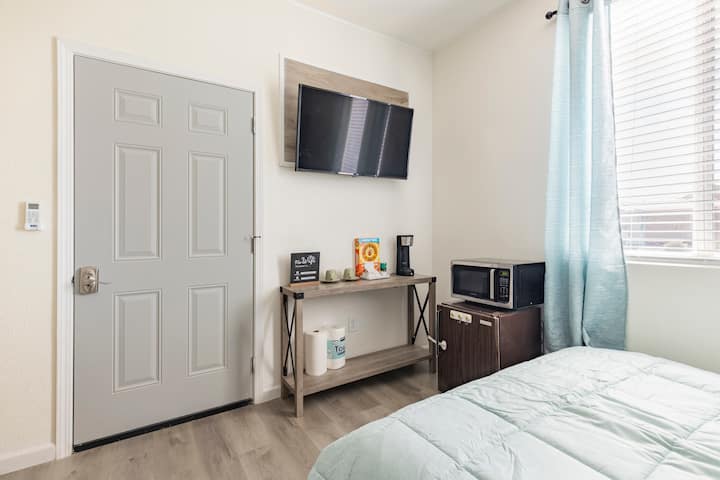 יחידת חדר שינה אלגנטית עם כניסה, אמבטיה ומזגן