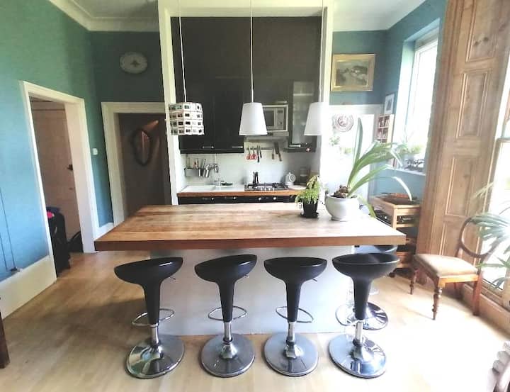 2 חדרי שינה אלגנטיים עם מרפסת וגינה גדולה