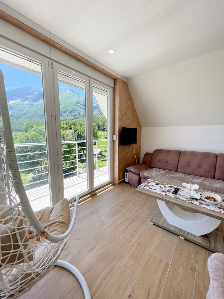 חדר מינימליסטי עם חדר רחצה, נוף להרים 3