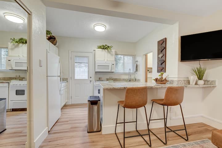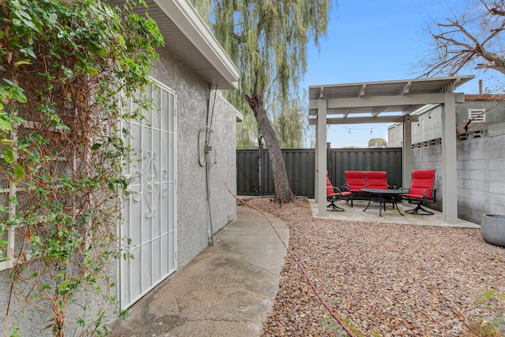 ג'ודי היא ילידת לאס וגאס ובבעלותה בניין בן 5 יחידות מאז 1979. כל אחד מהבונגלוס הייחודי הזה שופץ לגמרי מהריצוף החדש ועד למזגנים, לגג ולחלונות החדשים. דלתות אסם, מכשירי חשמל מנירוסטה ודלפקי גרניט יוצרים בית מגורים ישן ומעודכן משנות ה -40 של המאה ה -20, הרחק מהבית עבור האורחים שלנו. הכניסה המגודרת האוטומטית יוצרת תחושה של בטיחות יחד עם הבניין מוסתר מאחורי כיסוי החניה והחצר המעוצבת הגדולה. אתם נמצאים בנווה מדבר קטן משלכם במדבר.