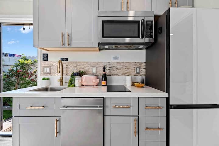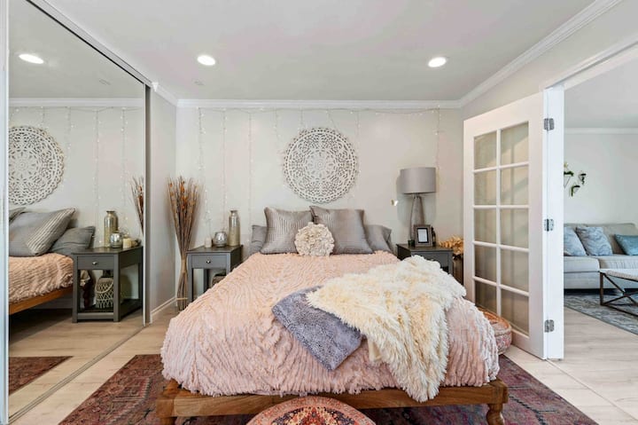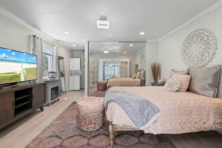 *בוהו פינק ריטריט עם מטבח, פטיו, כביסה!*