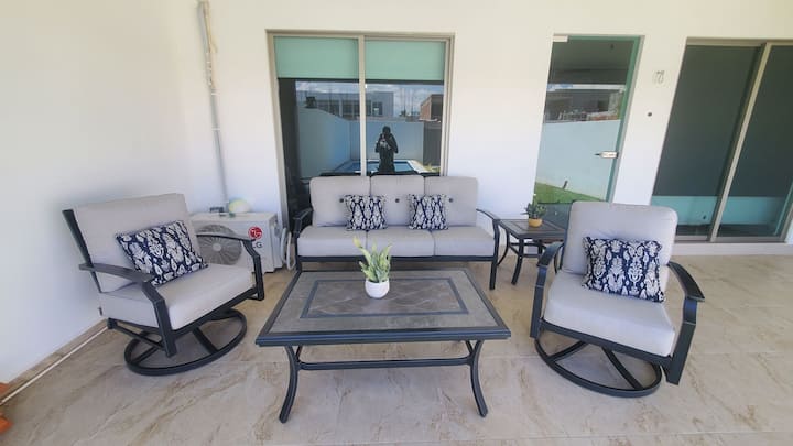 בית נופש מודרני עם בריכה ומרפסת!