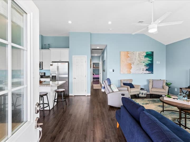 להירגע ולהירגע בנופש החוף האופנתי והמעוצב בטוב טעם. מטבח פתוח/אזור מגורים מושלם להתכנסות לארוחות, זמן טלוויזיה או משחקים. צפו בגלים מהדק תוך כדי שתיית משקה בבוקר או בערב. אזור הגישה לחוף הים של סֵי אייל נמצא במרחק הליכה קצרה, נסיעה בעגלת גולף או נסיעה ברכב (פחות מכמה דקות). 3 חדרי שינה/2 חדרי רחצה, מקום ל-9 אנשים לכל היותר כולל ילדים מתחת לגיל שנתיים (שימו לב לחדר עם מיטות קומתיים). הבריכה היא עונתית מיום הזיכרון עד יום העבודה. פתיחה מוקדמת עלולה להתרחש, אבל היא לא מובטחת.