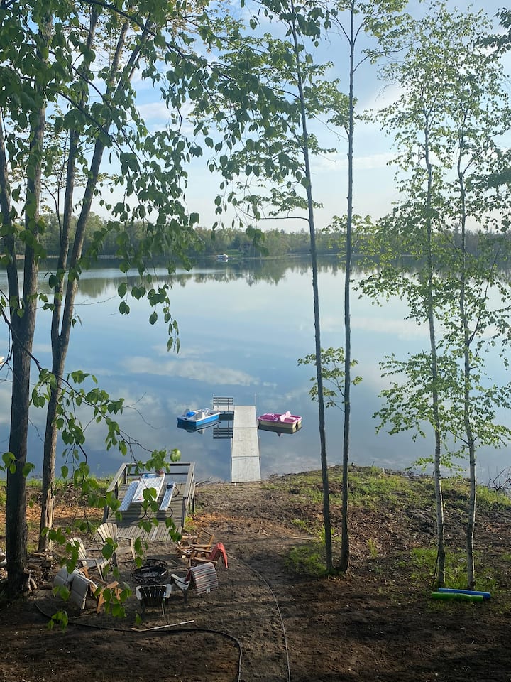אפשר להיכנס לחצר האחורית דרך הדק מסביב לבית או דרך אחת משתי דלתות המרפסת. יש גרם מדרגות קצר שמוביל לאזור בור האש ואחריו קו החוף החולי של אפס הכניסה. יש לנו רציף/מזח קצר עם ספסל מושלם לדיג. יש לכם גישה למחסן עם שפע של חגורות הצלה וכמה צעצועים נוספים, חומרי דיג וכיסאות. יש כרגע שתי סירות משוטים, 2 קיאקים ורפסודת שחייה מעוגנת לשימוש חינם.