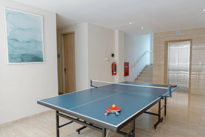 אפשר לאתגר חברים או תושבים אחרים למשחק פינג פונג כיפי.