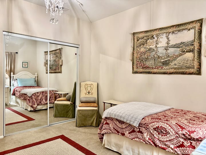 חדר שינה פרטי למעלה עם חדר רחצה משותף