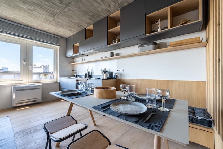 דירת סטודיו מרהיבה עם נוף לשמיים (St Gilles/Louise)