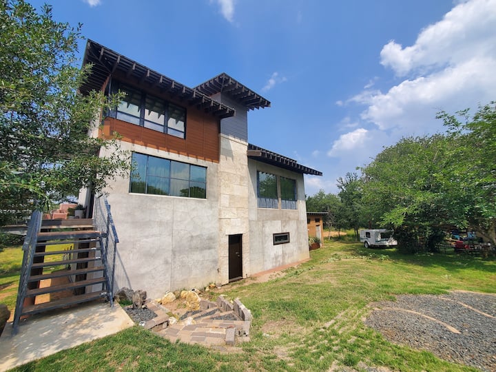 בית 2 חדרי שינה/2 חדרי רחצה, מואר ואמנותי + אגם סמוך וחיות מחמד בסדר!