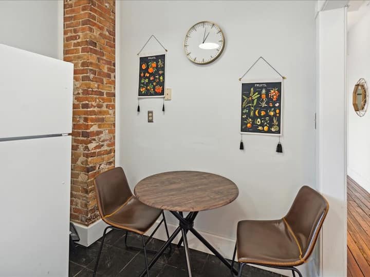 ליהנות מהנוחות של מטבח משותף ומלא המצויד בדברים החיוניים שייתכן שתצטרכו כדי להכין ביס מהיר או ארוחה קלה במהלך השהייה. אין חדר אוכל רשמי, אבל יש שולחן אוכל בסגנון ביסטרו עם 2 מושבים במטבח.