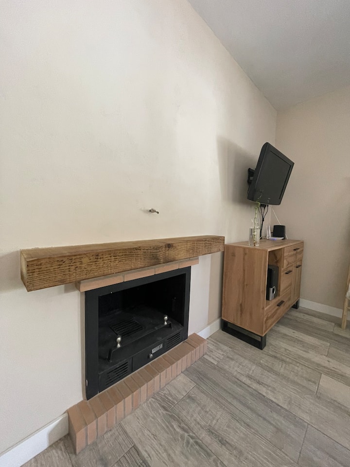 בית כפרי חמים עם אח ליד שביל ירוק