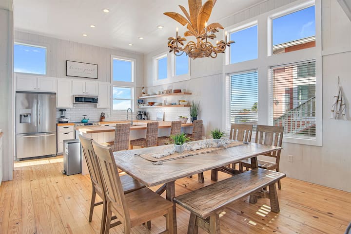 שיפצנו את Cloud Nine במלואו ב -2021, וניצלנו אותו בקסם חוף - שיק. יש שפע של נגיעות מעצבים בבית הנופש המודרני והמעוצב הזה. למצוא רצפות אורן נקיות ובהירות מעץ מלא, קירות ותקרות של ספינות חוף, משטחי אטליז במטבח, משטחי קוורץ באמבטיות, פרטי אריחי רכבת תחתית ואמבט ראשי דמוי ספא עם אריחים מרוקאים וראש מקלחת קינטי.