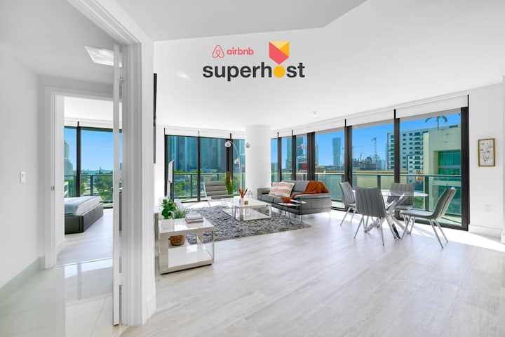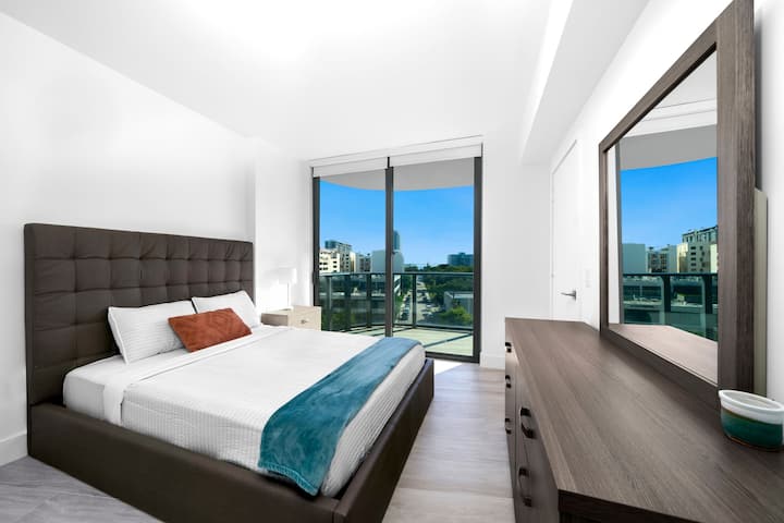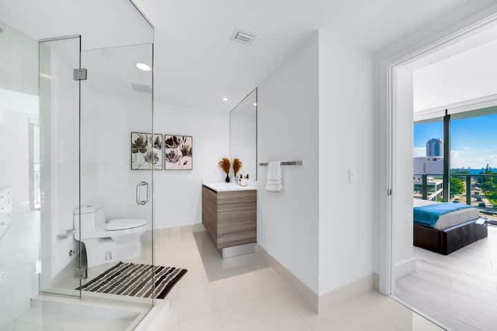 דירת פינה מרהיבה עם 2 חדרי שינה ו-2 חדרי רחצה במרכז מיאמי