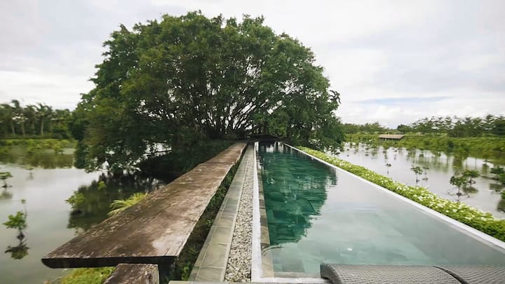 זה בין המקומות היחידים באזור עם בריכה.