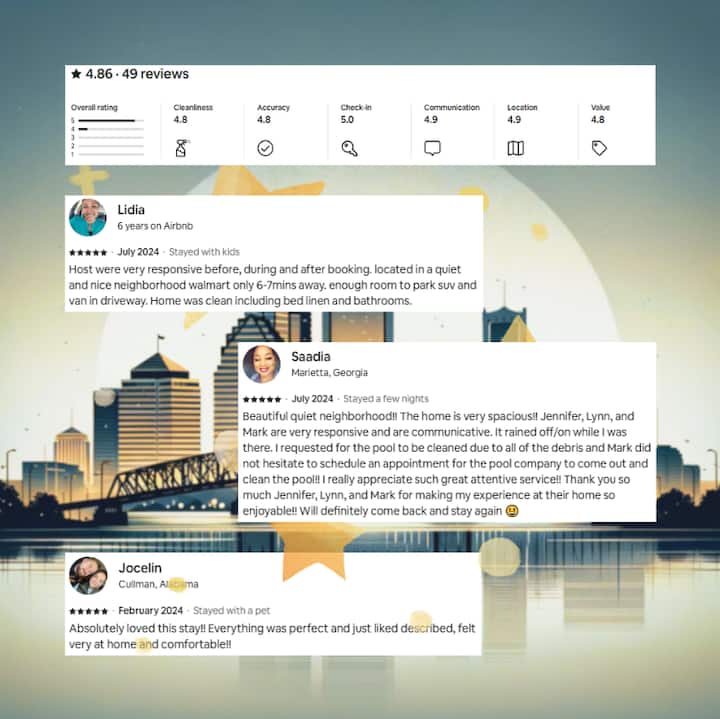 למרות שאנחנו שואפים לשמור על הבריכות המחוממות (יש לבדוק בדף הנכס אם הנכס הזה כולל בריכה מחוממת או לא מחוממת) בטמפרטורה של 87 מעלות פרנהייט (לטמפרטורות סביבתיות מעל 70 מעלות פרנהייט), שימו לב שאנחנו לא יכולים להבטיח את טמפרטורת הבריכה; בריכה מחוממת לא מרמזת על כך שהבריכה תרגיש שחם לגעת בה, מכיוון שמזג האוויר והתפיסה הסובייקטיבית משתנים. כמו כן, הספא (אם מוצע בנכס הזה) אינו פעיל בדרך כלל בטמפרטורות מקפיאות. אם תזדקקו לסיוע נוסף עם הבריכה או עם פעולתה, אל תהססו לשלוח לי הודעה.